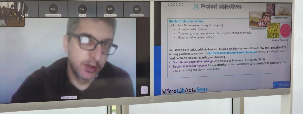 The Center for Sensing Technologies at the BioSense Institute recently hosted a series of presentations, highlighting cutting-edge scientific projects and advancements in the field. Among the featured presentations, the project’s PI Dr. Vasa Radonic, and Dr. Nikolina Jankovic from the MicroLabAptaSens project shared the project’s activities and showcased the results and outcomes achieved so far.